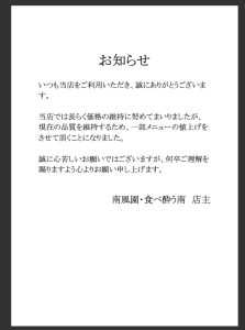 有限会社ヒラヤマ カテゴリー: お知らせ 一部メニュー価格改定のお知らせ お知らせ 2026.01.07 炭鉄食べ酔う南 3月のお休み お知らせ 2025.03.02 南風園 3月のお休み お知らせ 2025.03.02 炭鉄 食べ酔う南 2月のお休み お知らせ 2025.02.02 南風園 2月のお休み お知らせ 2025.02.02 南風園 1月のお休み お知らせ 2024.12.31 炭鉄 食べ酔う南 1月のお休み お知らせ 2024.12.31 炭鉄食べ酔う南 12月のお休み お知らせ 2024.11.28 南風園 12月のお休み お知らせ 2024.11.28 炭鉄食べ酔う南 11月のお休み お知らせ 2024.11.02 投稿ナビゲーション 過去の投稿